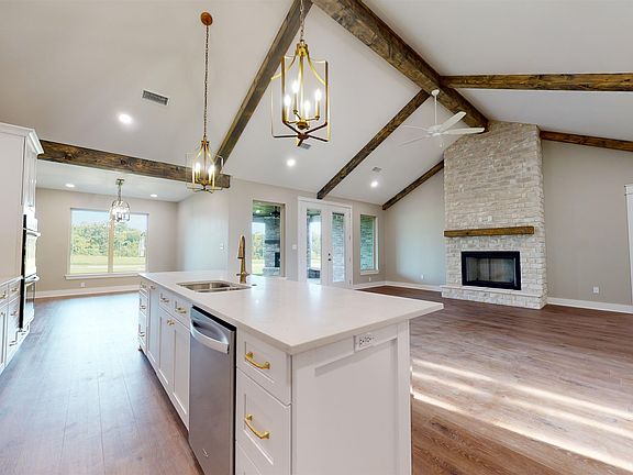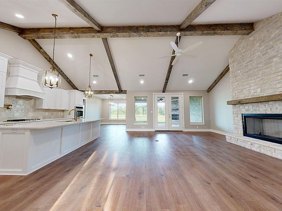 Gorgeous NEW Construction Home. This house offers 5 bedrooms and 3.5 bathrooms. The grand entrance leads to a large living room and magnificent 14-foot stone gas fireplace. It features a vaulted ceiling with a wonderful open concept kitchen. You will enjoy many meals and hosting at the large granite island. There is a functional outdoor patio with a wood-burning fireplace perfect for entertaining and enjoying cool evenings. The primary suite is large enough for a king-sized bed and has a bathroom attached with a spacious tile shower and a soaking tub. The upstairs bonus room is large and the perfect space for a playroom or office. This home has an amazing amount of storage with a large, heated and cooled, walk-in storage closet. You will not see many houses with such detail.
