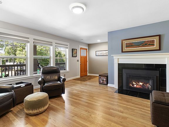 Pride of ownership shines in this expansive 2,534 sq ft rowhouse—one of only three units with no HOA. Thoughtfully designed with 3 bedrooms, 2.1 bathrooms, and a separate upstairs office perfect for remote work or creative space. The large living room features hardwood floors and a cozy gas fireplace. The open-concept kitchen is ideal for entertaining, with quartz countertops, generous prep space, and seamless flow into the dining and family rooms. Vaulted ceilings in two bedrooms—including the spacious primary suite—enhance the airy feel. The primary includes a walk-in closet and full bath with ample storage. Upgrades include spotless hickory and oak flooring, newer appliances, central air, Trex deck, laundry chute, and fresh carpet upstairs. The fully fenced backyard offers privacy and mature landscaping, while the charming front porch with sun shade adds curb appeal. Enjoy the convenience of a pristine tuck-under garage and driveway parking. The lower level features a private entry to the backyard, abundant storage, and a large bonus room. Located near top-rated schools (Sabin, Beaumont, Grant, or Jefferson), this home offers easy access to vibrant NE, hospitals, parks, downtown and restaurants. With a rare energy score of 8, plus a 97 Bike Score and 89 Walk Score, this home blends space, sustainability, and location in one exceptional package. [Home Energy Score = 8. HES Report at https://rpt.greenbuildingregistry.com/hes/OR10241641]