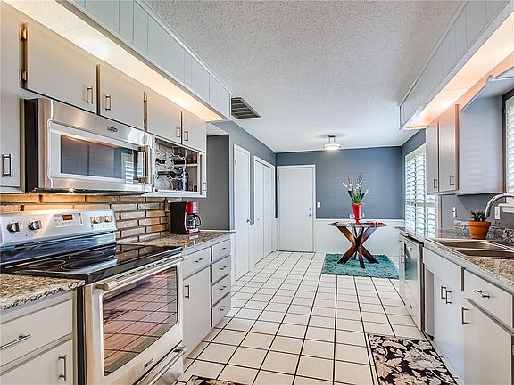 Inground Concrete Pool! Two Living and Two dining, Updated kitchen with granite countertops New Maytag stainless appliances. High quality 5/8 inch thick bamboo wood floors throughout, tiled kitchen and bathrooms. New granite countertops and sinks in both bathrooms, new shower door in master. Wood burning fireplace with a vintage Firebird Adjusta-Fire Indoor Grill. Tray ceiling with accent lighting. Plantation shutters in living and dining areas. New Levolor cellular shades in bedrooms and hall bath. The sliding glass doors off the dining area offer a view of the inground pool with a slide. Pool pump replaced summer of 2016. The concrete patio surrounded by flower beds has a wrought iron and brick fence, to keep little ones safe from the pool area. Back yard has established flower beds ready for your spring planting. Flower beds and shrubbery add curb appeal to the already unique front exterior of this house. W/D included.