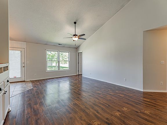 Welcome to 3812 Needle Pt, a charming ranch-style home nestled on an oversized cul-de-sac lot. This 3-bedroom, 2-bathroom home boasts an inviting open-concept floor plan, highlighted by vaulted ceilings that create a bright and airy atmosphere - perfect for entertaining, unwinding, or enjoying quality time with loved ones. The kitchen features sleek white cabinetry and stainless steel appliances. Natural light pours into the adjacent dining area through double glass doors, providing a seamless transition to the expansive backyard, complete with a patio and cozy fire pit. The primary bedroom offers an ensuite bathroom, a generous walk-in closet and french doors to the back yard. The additional two bedrooms are well-sized, with ample closet space, and are conveniently located near the hall bathroom. A sizable laundry room adjacent to the kitchen adds to the home's practicality. To top it all off, a brand-new roof has just been installed, offering peace of mind for years to come.