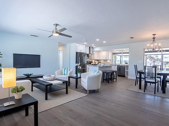 Bring your Boat to this beautifully Updated Block Home on Canal with direct access to Palma Sola Bay! This 3bed, 2bath, block home, offers an open and split floor plan with great natural lighting and space for entertaining. The main living areas and bathrooms all have new tile while the bedrooms transition to wood. The bathrooms have new tile surrounds, vanities, and fixtures. The open kitchen has a large island, stainless steel appliance package, granite counters, recessed lighting and a large pass-through window with bar-top out to Lanai. The master bedroom has a large wood burning fireplace, windows overlooking the canal, walk-in closet and a barn door to your master bathroom with a walk-in shower and vanity with double sinks. Back across the main living area are the other two bedrooms and updated guest bathroom. There are new fixtures throughout along with new paint inside and out. Just off the dining area and kitchen is a screened lanai that looks out to your backyard and water access. There is a NEW 5'x20' wood dock & reinforced concrete seawall being completed right now with permits! The two-car garage has hookups for laundry and a new permitted Garage Door with opener. New 2020 permitted A/C system and an 8yr old roof. All new landscaping will keep your yard easy to maintain. Hurry in to see this vacant and staged home.