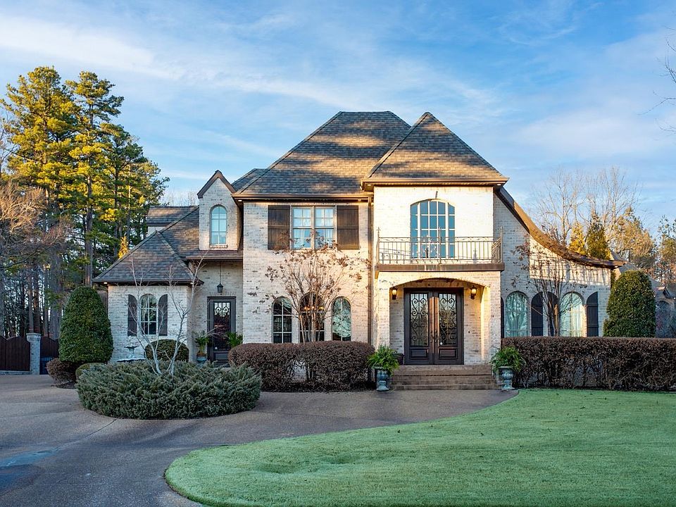 Nestled quietly in the back of Ridgepointe, with quick access to Casey Springs rd and Ridgefield Christian School, sits 3812 Riviera Drive, an architectural masterpiece both inside and out. From the road, it looks like a storybook castle, with wrought iron balcony and enchanting landscaping. As you step through the double front doors, the main living room welcomes you, with its built ins, beautiful beamed ceiling, and gas log fireplace. The kitchen is just to the left with breakfast bar island, copper sink, gas stove, double ovens, and its own sitting area. On the other end of the main floor, the luxurious primary bedroom awaits. The primary bathroom has a walk in shower, soaker tub, separate dual vanities, and walk in closet. Upstairs you'll discover three more large bedrooms with two full baths! Every nook and cranny has been thoughtful and carefully maximized. There's even walk in attic access with plenty of Christmas decoration storage room. Back downstairs, we saved the best for last. Your favorite room will undoubtably be the spacious den with floor to ceiling windows that overlook the picturesque dream of a backyard that checks every box imaginable. Covered patio with kitchen and bar, wood burning fireplace, perennial garden, and heated saltwater pool with waterfall and more! Finally, you'll appreciate the giant two car garage AND bonus golf cart garage/storage area. This home is a real life fairytale and could be yours!!