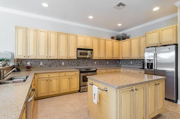 Spacious lakefront home with southern exposure in the low density, gated community of Copper Cove Preserve! This sought aftercommunity with low HOA fees is ideally located between downtown Naples & Marco Island. The first floor of this immaculate residencefeatures a generous master suite, comfortable study or guest bedroom w/ full bath, very large kitchen w/ oversized island & two largepantries. Kitchen adjoins the family room, living room and master bedroom which all open to the lanai. Crown molding is featuredthroughout the first floor. An oak wood staircase provides access to the second story which overlooks the main living room & accents thesoaring ceilings & high windows that provide plentiful, bright, natural light. The bonus room also allows viewing of the main living areabelow. The bonus room can be used as an additional bedroom or family room and it includes a balcony that overlooks first floor. Residenceis finished with a large screened lanai with beautiful, heated, saltwater pool & spa. Both electric & manual shutters as well as impact glass inthe four front upstairs windows provide complete storm protection.
