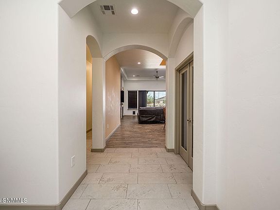 Still looks like New!!! Enjoy outdoor living at its finest with a south-facing backyard that features an in-ground pool, artificial turf, a covered patio with a built-in fireplace and grilla'perfect for entertaining year-round. Rock walls provide added privacy, while the front courtyard offers a charming space to relax or greet guests.You will LOVE THIS beautifully crafted 5-bedroom, 3-bathroom home by Veloz Homes, offering over 2,700 sq ft of luxurious living space and exceptional design throughout. Nestled in a Red Hawk Estates with breathtaking views of the Organ Mountains. Inside, you'll find a thoughtfully designed split floor plan with high ceilings, nichos, and an open-concept layout. The gourmet kitchen boasts granite countertops, stainless steel appliances, and ceramic tile. Youll love the launrdy room entry from the master closet, all the little extras in this amazing home the second you step into the courtyard. Call for your showing today.