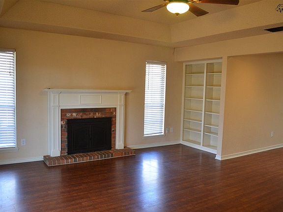 Exceptional 4 bedroom, 2 bath home in Belair Addition. Just recently updated flooring, w/updated lighting & door fixtures. Master suite is isolated from the 3 secondary bedrooms; ALL have walk-in closets. Kitchen has granite counters & a large pantry; frig included. This home also has a great back yard w/a large covered patio & a storm cellar. Rear entry 2 car garage; also an extra concrete pad in the rear of the home for additional parking. Landlord will consider pets on a case by case basis. No smokers.