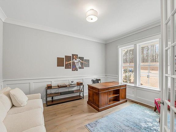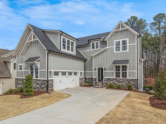 Like New, Modern Farm House in West Raleigh's New Subdivision of Stoneridge Place. Construction Completed 2023, Home has been occupied for only 1 year, and shows beautifully! Open Floor plan with Practical, Functional and Comfortable Primary Living Spaces. First Floor complimented by 12-foot ceilings and hardwoods throughout. FF Home Office with Privacy French Doors, Cheery FR w/ Sliding Glass Doors opening to the relaxing Screened Porch w/Stone Gas Fireplace. White Kitchen with KitchenAid SS Appliances (5 eye gas cooktop) and Quartz Counters. Grand Primary Suite w/Luxe Bath & Large WIC. Laundry Rm & Drop Zone leads to the 2-car Courtyard Entry Garage w/ EV Outlet. Second Floor - Central Open Loft, Nice-Sized Carpeted Bedrooms, Closets and Baths. Great 'kick-back' Bonus Rm! The Lower Level offers 1960sf of Full, Secondary Living Quarters - Guest Bed & Bath, Flex Room or Second Home Office, Large TV Den, Quartz Bar w/Beverage Cooler, Exercise Rm, and a Fantastic Large Room Ideal as Theater/Media Room! All leading out to a covered patio overlooking the flat fenced rear. Possibly can accommodate a pool. Shows, lives, and practically IS New Construction! A West Raleigh Must See !