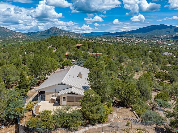 Excellent Location!! Renovated 4 BD, 3 BA, 2 Car Garage modern ranch home on a high ridge with 360-degree views. This expansive home has been lovingly updated. Special features include: foyer with custom glass shelves and handmade vigas, sandstone wood-burning fireplace and built-in bookshelves in the living room. Recessed lighting, dual-pane Pella windows and porcelain tile throughout the home. Remodeled kitchen features new tile with vintage colors, island with built in cherry-wood breakfast table, and Thermador appliances. Floor plan is very versatile. Separate den/family room and formal dining room. Themaster has been modified to include a so that it can be used as a master or closed off for a great living space for tenant or extended family—with a separate entrance. MasterCraft metal roof. 2 car garage with extra parking on gravel, and garage dog kennel leads to dog run. All city utilities are a huge plus! Seller financing is an option. Easy to show!