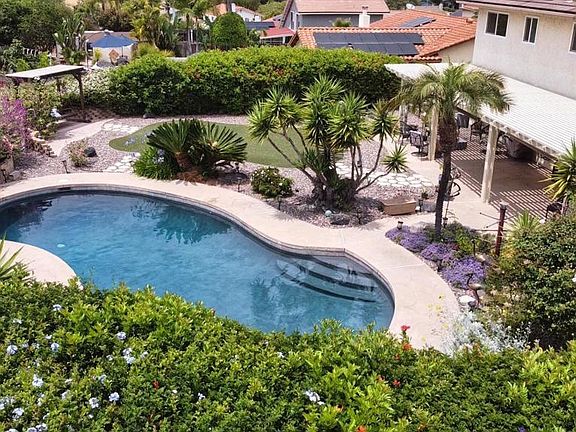 This is the one! Spacious, Entertainer’s Delight in Bonita! This 4 bedroom, 2 1/2 bath home is just what you have been waiting for! Outside, this gorgeous home features a resort style, black bottom pool, perfect for entertaining on those warm summer days. Drink in the outdoors where a peaceful hand crafted bench swing beckons you to sip coffee in the morning while taking in the beauty of your private sanctuary. Get back to nature with a custom garden complete with artichokes! Once inside, you will be delighted by the versatility of the space. An expansive, open living/dining room is perfect for entertaining guests. The family room is complete with fireplace and casual dining area. The kitchen has been beautifully updated with tasteful finishes and is ready for all your entertaining needs. After a long day, escape to your private primary retreat complete with ensuite featuring a walk in shower, walk in closet, and a view of the hills and pool. The 3 additional bedrooms provide plenty of space for family, guests, a home office, or workout room. The spacious 3 car garage is equipped with an electric vehicle car charger. Save big with solar panels that will be paid off at close of escrow! This place also includes a Security system. This home is minutes from a network of hiking trails, including the Chula Vista Municipal Golf Course loop, and Sweetwater Regional Park, which provides hiking, equestrian, and camping activities. Bonita is a wonderful place to live. Come live the Good Life here!