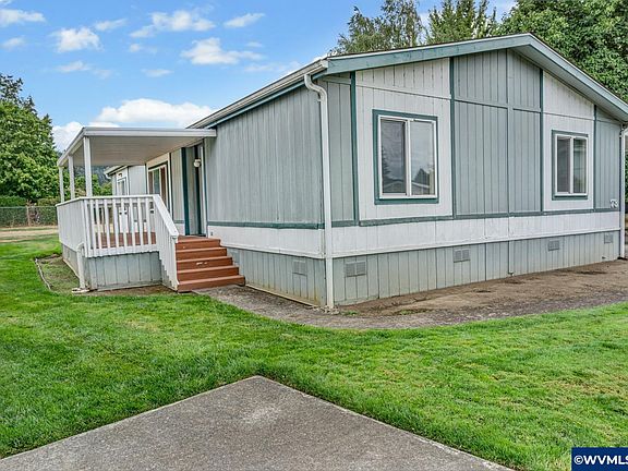 Well kept double wide in quiet 55+ park just outside Lebanon. Light, bright kitchen with skylights. Large walk in closet w/ walk-in shower in primary bedroom. Huge carport 52'x12' & extra vehicle concrete parking slap. Spacious lot w/ underground sprinklers. Large storage shed w/ workbenches & shelving. Park rent included water, sewer, garbage & cable.
