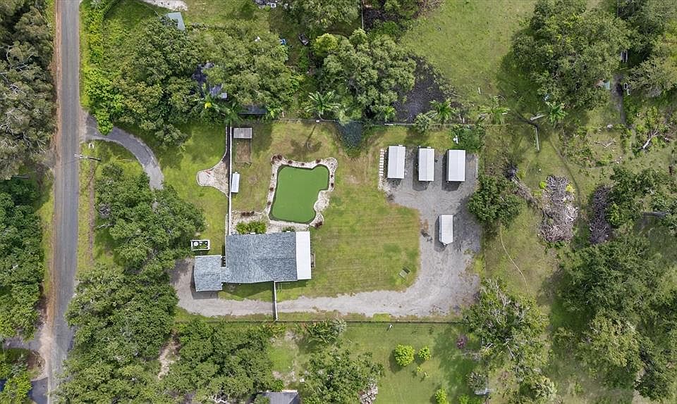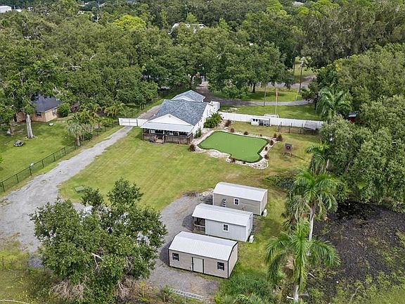 Private, quiet one-acre property in the heart of expanding residential and commercial development—greatly functional layout and endless potential. This 3 bed 2.5 bath home features an updated kitchen with walk-in pantry, renovated baths including a spacious primary shower with dual sinks, two walk-in closets plus custom shelving in every closet, and a centrally located laundry room with custom cabinetry. A large back porch serves as the perfect gathering space overlooking a fully fenced yard. Huge circle driveway and back yard drive-through access. Outdoor living shines with a 1,300 sq. ft. putting and chipping green, axe-throwing board, chicken coop, and dog pen. Three versatile outbuildings expand the use of the property: two are air-conditioned, one for storage/garage, and one is built as a true armory with steel bars throughout the walls, ceilings, doors, and windows plus battery-backup security. Another with a cozy front porch and half bath is ideal for a home gym, office, or hobby space. Energy efficiency upgrades include spray-foam attic insulation and a whisper-quiet, zone-controlled ductless mini-split system (~5 yrs), paired with newer appliances (washer, dryer, refrigerator, dishwasher ~3 yrs) and a roof about 7 yrs. Conveniently located yet tucked away, this property offers a lot today with endless potential for tomorrow.