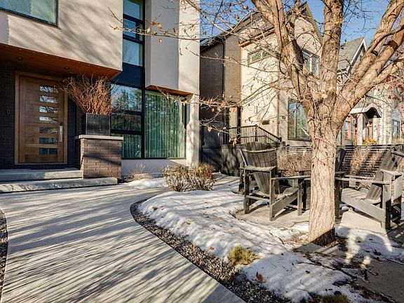 Exceptionally high-quality home in sought-after Parkhill, just a few doors from the Ridge Park with access to the Elbow River pathway system. Enjoy a walkable lifestyle minutes from the vibrant 4th Street Village, offering an endless array of shops, dining, and services, along with proximity to excellent schools. This stunning contemporary residence showcases impeccable design and craftsmanship with bespoke architecture by Marvin DeJong and an incredible array of upgrades. Brick, metal, and stucco create a striking curb appeal punctuated with a custom 2.5†solid oak and glass front door. 3,096 sq ft of developed living space including 4 bedrooms and 3.5 bathrooms. The totally open-concept main floor features high ceilings, exceptional natural light from the oversized front and rear windows and custom herringbone hardwood floors. The living room is anchored by a custom-paneled fireplace with “frame†television and soft floor-to-ceiling sheers. Truly incredible chef's kitchen with extensive custom cabinetry, quartzite counters and a massive “waterfall†island with seating. Top appliances include: a La Cornue gas stove, Subzero fridge plus 2 fridge drawers, 2 Subzero freezer drawers, 2 Subzero wine fridges, Wolf Induction burner, 2 dishwashers and a custom fabricated quartzite sink. The generous dining area with designer lighting and built-in storage overlooks the rear yard . A mudroom with heated floor and excellent storage and a discreet, elegant powder room complete the main level. Striking staircase with glass wall and solid wood treads leads to the upper floors…no carpet in the home. The primary suite features blackout drapery, wall-mounted TV and a well-organized walk-in closet. The spa-inspired ensuite showcases heated custom marble flooring, designer lighting, Kateryn cast iron soaking tub, zero-threshold shower with steam, water closet with Japanese bidet toilet and a large double vanity with honed marble counter and Restoration Hardware fixtures. The balance of the second level includes two bright bedrooms (one currently used as a dressing room), a spacious house bath and a walk-in laundry room with sink and storage. The top-floor holds both a large studio space with amazing light quality and an office area with access out to a large and private terrace. The fully finished lower level offers heated hardwood floors, a media space, games room, work station, bedroom and a full bath. Outdoor living is equally impressive with a front terrace with perennial-rose garden and a sunny west-facing and low-maintenance back yard with multiple patios. Additional highlights include a smart home system that controls Lutron lighting, temperature and security, a sprinkler system and Gemstone exterior lighting. The fully finished and heated double garage has 2 EV chargers and enjoys a paved alley. This exceptional property must be seen to be appreciated.