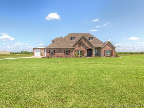 Country living does not get any better than this! Large open windows give you views for miles This property comes with aprox 6 acres of land and includes part of the 14 acre pond-spend your summer days kayaking or fishing and your evenings around the firepit or relaxing on the covered porch. This home has an amazing gourmet kitchen w/professional appliances and flexible living space to meet your needs, the upstairs could even be a mother in law suite. PLUS a 2,000 square foot shop with electric for all of your projects! Less than 10 miles to Oologah lake, but who needs a lake when you can catch fish in your own back yard! This property feels like your own private paradise! New roof to be installed before closing.