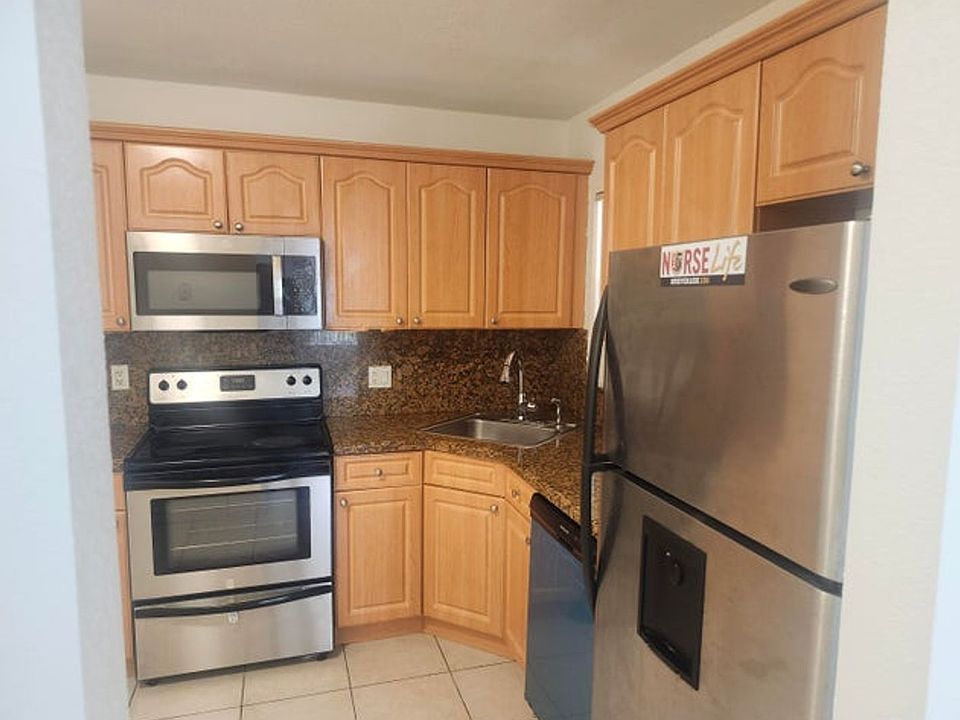 COURTESY OF 5 Star Realty Inc WELCOME HOME TO THIS COMPLETELY UPGRADED 1ST FLOOR CORNER UNIT. BASIC CABLE AND INTERNET INCLUDES IN THE RENT, GRANITE TOPS, TILES THROUGH COMMON LIVING AREA AND LAMINATED IN BEDROOMS, SS APPLIANCES, PRIVET ENTRANCE, SCREEN-IN PATIO, WASHER & DRYER IN THE CONDO. NO ASSOCIATION APPROVAL NEEDED!