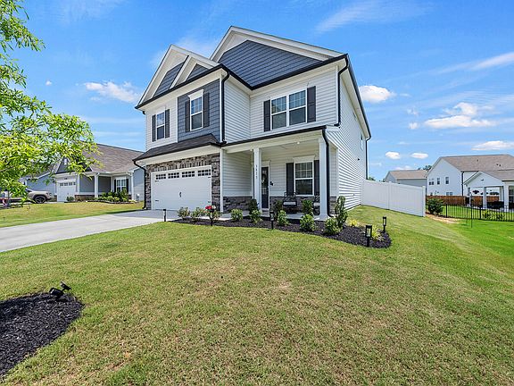 Welcome to your dream home! This stunning like new property boasts over $90,000 in upgrades, ensuring a luxurious and comfortable lifestyle. Step onto the covered front porch and into an open floorplan adorned with luxury vinyl flooring, soft close doors and custom closets creating a seamless flow throughout the first floor. The drop zone bench with LED lighting provides both functionality and ambiance, while Google Nest thermostats ensure energy efficiency. The kitchen is a chef's delight with a custom pantry system, quartz countertops, and a large center island perfect for entertaining. Natural light floods the space. Imagine hosting gatherings in the living room equipped with surround sound and custom built-ins with LED lighting, or working from home in the office adorned with its own set of custom built-ins. Even the garage is upgraded with custom cabinets and epoxy flooring, offering ample storage and a pristine finish. Upstairs, the large primary bedroom impresses with double door entry, tray ceilings, and abundant natural light. The en-suite primary bath features quartz counters, a walk-in shower, and a spacious soaking tub for ultimate relaxation. Your wardrobe will feel at home in the primary walk-in closet, complete with a custom built-in system featuring valet and belt rods, pull-out hampers, a jewelry tray, and custom lighting. The convenience continues in the laundry room with its own set of custom cabinets and counters. Three additional bedrooms, two with walk-in closets, and another bath with granite counters complete the second floor. Outside, enjoy the covered patio and fenced backyard enclosed by a 6-foot vinyl privacy fence, perfect for outdoor gatherings and relaxation. This home truly offers the epitome of modern living with its thoughtful upgrades and impeccable design. Don't miss the opportunity to make it yours!