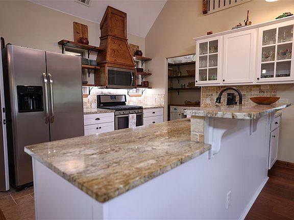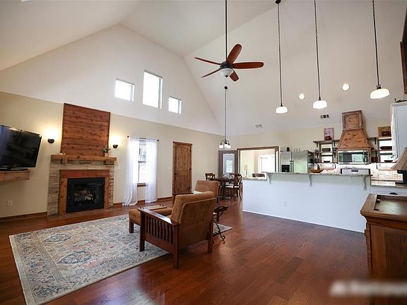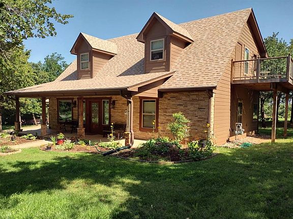 Beautiful custom home located in Edmond Schools and tax friendly Logan County, this beautiful open concept modern rustic home on a wooded .89 acre lot built in 2017 is a must see! 3 bedroom, 2.5 baths. Downstairs master suite, upstairs bedroom, bath, balcony & loft. Vaulted living room/kitchen/dining. Gas fireplace. Kitchen: open shelving+cabinets, granite countertops, butlers pantry, slide out storage, gas oven, built-in microwave. 2 flex rooms could be considered bedrooms. A 4 season sunroom overlooking the yard/green space and a 2nd floor open loft. Large 13’x17’ master suite & bath with glass enclosed spa/wet room, walk in shower, jetted tub, 2 vanities, private toilet room, full size washer/dryer. Energy efficient: spray foam insulation roof/walls, LED lighting. 3 zone HVAC system. Attached oversized 24’ x 30’ two car garage with insulated attic. New 24’ x 24’ shop; on concrete foundation & apron, roll-up door, walk-in door, windows, LED lights. Separate 10’ x 16’ garden shed. Property is serviced by economical Logan County Rural water ($15 nominal monthly bill) Other features: Remote controlled blinds, top down bottom up shades. Garage door opener Water filtration system Large foam insulated attic storage Storm shelter in garage floor Electric 40 gal water heater Stays with house: Washer/dryer Gas Oven/range Microwave oven Refrigerator Wall mounted TV in upstairs bedroom