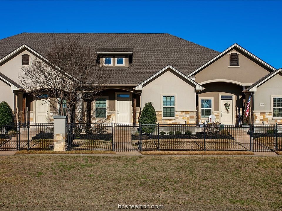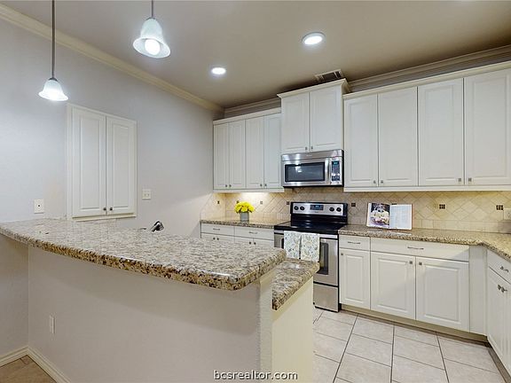 This immaculate, single-story townhome provides a great opportunity for students, downsizing, a game-day retreat, or investors! Great location, situated in the highly sought-after subdivision of Summit Crossing subdivision, in central College Station. Accessibility to TAMU, medical facilities, restaurants, and shopping is quick and easy. The interior and exterior have been newly painted and new carpet has been installed in all bedrooms. Main living areas and bathrooms are tiled. New smoke and smoke/CO2 detectors have been installed, and interior lighting has been replaced with LED lighting for brightness and energy efficiency. Special features are crown molding throughout, faux wood blinds on all operable windows, high ceilings, ceiling fans in all living areas, and an open concept in the living/dining area. The kitchen is large with lots of cabinets, granite counter tops, stainless steel appliances, and a breakfast bar. All bedrooms are large, and bathrooms are en suite. The back yard has a privacy fence with a gate and covered patio with a fan, affording outdoor entertaining and privacy without the concern of maintaining a large yard. The subdivision is beautifully maintained, quiet, and has a private community pool for summertime fun!