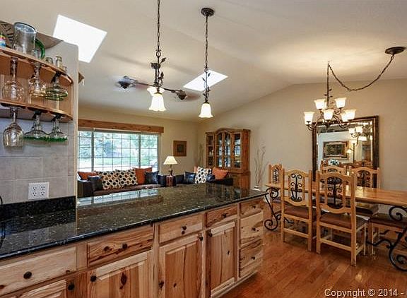 Fabulous WOW-remodel on huge, private lot w/180 degree unobstructed Pikes Peak & mountain range views ~ backs to Keller grounds & park ~ light, bright open concept main level w/skylights ~ gourmet hickory kitchen w/slab granite counters/gas stove/custom wine & spice rack ~ hardwood floors, tile & thick-pad carpeting ~ heated/AC sunroom w/blinds ~ lower level family room w/fireplace & built-ins ~ walk-out office/bonus room ~ oil-rubbed faucet fixtures ~ Italian tiled baths & shower walls ~ new roof w/new gutters & guards ~ honeycomb blinds w/knotty wood valances ~ pot shelves in kitchen ~ birch wood vanities & new toilets ~ European door handles ~ French doors to sunroom off kitchen/dining area & to master suite covered composite privacy deck w/views galore ~ new interior, paneled doors & molding ~ dimmer lighting ~ beautiful fixtures throughout ~ staircase banister w/wrought iron rods ~ knockdown texture w/bullnose corners ~ heated, fully insulated garage w/lots of storage cabinets, rear yard access door & brand-new epoxy-painted floor ~ custom built 10x10 shop w/electricity & window-unit AC ~ new fence ~ extended rear concrete patio ideal for al fresco dining while watching the sun set above the mountain range ~ custom built 12x8 storage shed ~ camper-pad in back yard ~ top-notch professional front/back xeriscaping w/low-water drip system ~ AC and whole-house humidifier ~ walk to Keller Elementary and Russell Middle Schools ~ back yard gate access to park ~ all this and so much more in this move-in-ready beauty that looks and feels like a brand-new property ~ located on quiet cul-de-sac ~ offering make-believe country-feel-living but is mid-town & within easy access to anything and everything !