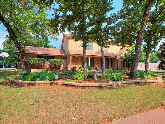 PRICE IMPROVEMENT! THE SELLER Has Made improvements. Left the old pictures to compare to the new. Some updates include: Refinished wood floors, updated hardware 2017, shower remodeled 2017, freshened woodwork and Fence replaced 2018, Granite counter tops and new backsplash in kitchen 2017, Carpet upstairs 2018, Wet bar remodeled 2017, Popcorn ceiling removed 2017, refreshing paint 2017, 2.5" inch blinds replaced 2016, Pool liner replaced 2018 pool pump is 2 years old. This is a inviting traditional home in a much sought after school district in Edmond. This home is situated on a corner lot in Cheyenne Ridge. Some features include, nice landscaping, some new windows, ceiling fans, zoned HVAC installed in 2008. There is , a guest bath downstairs, and wood beamed ceiling in the living room. This home is ideal for anyone seeking a large home with a lot of storage space, along with a great location. Seller to leave fridge.