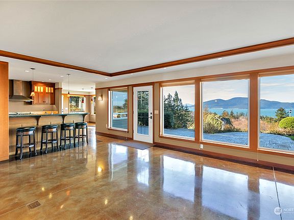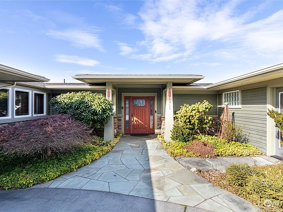 A rare find, this one level, custom built view home is situated on a quiet cul-de-sac in the coveted Rock Ridge neighborhood & is move-in ready! Contemporary design & high end finishes pair for luxurious living, touches such as in-floor radiant heat keep comfort in mind. Oversized windows let in a stunning view of the Guemes Channel, San Juan Islands & beyond. Gourmet kitchen is a chef's dream with custom cabinets, granite counters, butler's pantry & top of the line appliances. Primary en-suite is your private retreat with a gas fireplace, window seat & gorgeous bathroom with granite shower. Private stone patio is the ideal place for a mellow moment enjoying the view. Large two car garage also houses a hobby room ready for your projects!