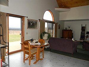 A beautiful home..Great View..Large Deck..7 Acres..Large 2 Car Garage.. Fenced Horse Pasture, 12x12 Structure for 1 horse. Soaring tongue & groove pine ceilings adds character to the kitchen, dining and living room. Two sliding glass doors lead to deck. Beautifully maintained. Radiant floor heat, tall basement partially finished could be additional living space. This lovely home sits back about 300 ft. back from road. Garage is 56x32 & has a frost free hydrant.Hicory Cabinets, new countertops, sink & faucet. Newer stove/microwave stay along with refrigerator & dishwasher.