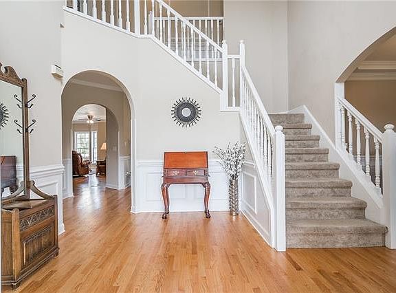 Year 'round resort living! This stately two-story home in Maple Place offers a spacious double lot with stunning backyard oasis featuring an outdoor kitchen, salt-water gunite pool with spill-over hot tub, outdoor bathroom, volleyball court, and beautiful landscaping! The welcoming wrap-around front porch leads into a two-story foyer opening onto a formal dining room and a large open kitchen with sunny breakfast area, updated kitchen with stainless appliances and mosaic tile backsplash. The large family room has a gas fireplace and windows overlooking the relaxing backyard. Upstairs, you'll find four bedrooms, including a huge master suite with sitting area and bath with double vanity, tub, and separate shower. The full unfinished basement is studded for expansion and offers plenty of storage space. Convenient location just up the street from Jenkins Elementary. Main level HVAC 2015, upper 2000. Roof is 2000.