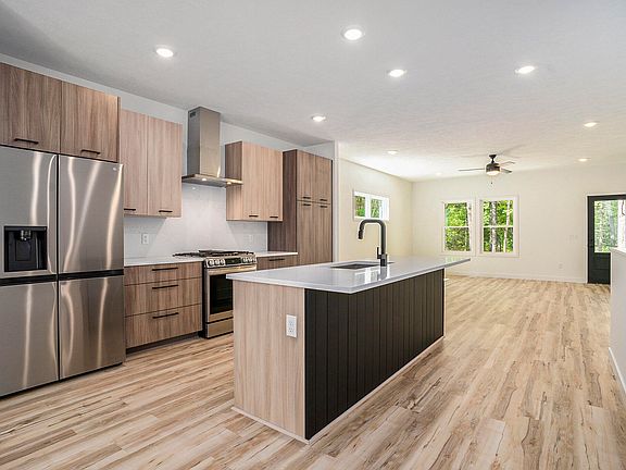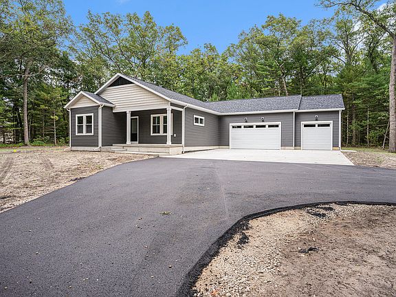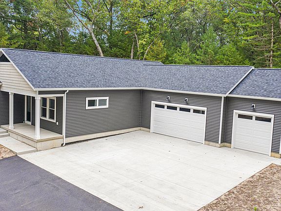 Tastefully designed custom home with modern finishes. This 3 bedroom 2 bath home is situated on a wooded 1 acre lot. 120 Acres of public land adjacent to the property ensures you will never have a neighbor with plenty of room to hunt or hike. Stonegate Golf course is adjacent to the other side of the property. Open concept great room with 9' ceilings and vinyl plank flooring. Kitchen features two toned flat panel modern cabinetry with matte black hardware. Quartz countertops and full height backsplash accent the stainless steel vent hood. 8' center island with snack bar. Modern LG stainless steel appliances. Primary suite is sure to impress! Primary bedroom offers a transom window, wall sconces and quality patterned carpet as well as views of the woods. Primary bathroom hosts a double si nk with quartz countertops, walk in shower, and a walk in closet with custom wood closet system. Both additional bedrooms are good sized. Both offer double closets with professionally installed wood closet systems and quality patterned carpet. Main floor mudroom and separate laundry room complete the main level. The lower level is plumbed for a 3rd bathroom and set up for 2 more bedrooms, a large family room and plenty of storage space. A covered front porch, concrete back patio and 3 stall garage with 8' high doors adds to the amenities of this home. The driveway will be asphalt to the road and the yard has topsoil. If you are looking for privacy in a location close to everything, this home is a must see. Buyer to verify all information. Seller is a licensed realtor in State of MI.