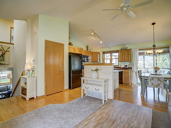 This beautiful home is full of natural light! The great room has cathedral ceilings and flows to the open kitchen/dining area with a large island w/ granite counters and breakfast bar! You'll love the 3-season cedar porch that looks out to the private, professionally landscaped backyard. Enjoy the quiet street, cozy neighborhood and parks nearby. Exposed lower level has space to finish and make 3rd bedroom, complete w/ full bath and walk-in closet. More yet..unfinished basement w/ huge cedar closet, laundry and storage.