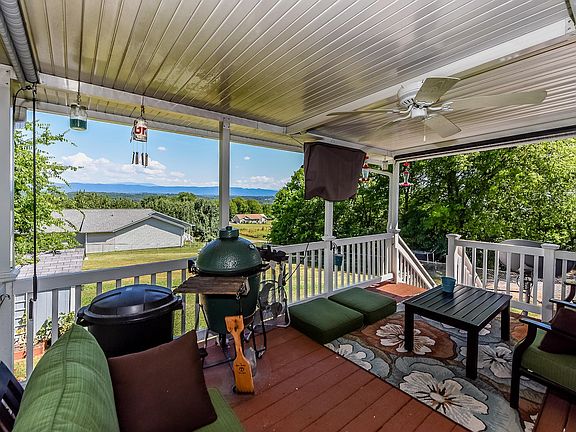 East TN treasure! Privacy and Mountain views! Immaculate home - owner has done everything top notch! Open family room, dining, kitchen with stone fireplace as centerpiece! Kitchen is dream come true! Granite countertops, new custom cabinets, wood - look tile flooring, kitchen aide appliances. New carpet in FR/DR, all BRs. Built-ins in dining room. Updated Baths. Lower level rec-room w/ 2nd fireplace (propane - but no tank - owner never used) Half bath, laundry. One car garage but double space - so great storage. Stone water feature - covered porch,fire pit, True Mountain view!