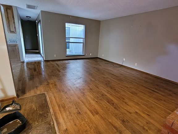 Westside Duplex on tree-lined cul-de-sac with fenced yard, an atrium with sliding glass doors and a court yard with deck. 2 bedroom, 2 bathroom, 2 car garage with remote, built-in shelves, granite kitchen countertops. Remodeled Maple kitchen cabinets. Freshly painted inside. New wood flooring installed in both bedrooms. Available Nov 1, 2024. Discount for single occupancy. Close to Sooner Mall, Tinker, I-35, Medical Complexes. Pet fee applies. $35 application fee.
