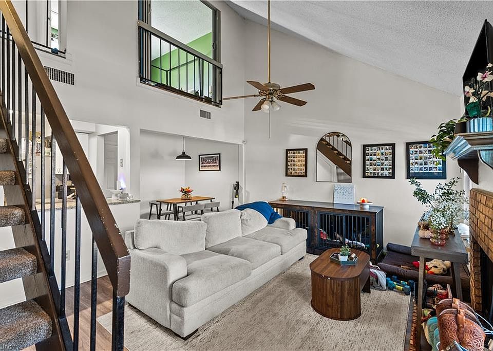 Cozy fireplacePrivate patioLow-maintenance yardSleek quartz countertopsUpdated appliancesVaulted ceilingsAbundant natural light