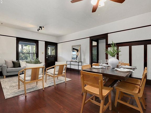 This is an early 20th century craftsman. It includes 3 bedrooms and 2 bathrooms. Upstairs has full bath and primary suite. Newer kitchen cabinets. Carport with room for two cars. Large backyard and unfinished basement (vapor barrier on dirt). It is approximately a half mile to Division Street, two block walk to Gladstone. Close to Reed College, Hopworks, Yoko's, C-Bar, and all things Division are nearby. Owner pays trash, water and sewer. Tenant responsible for all other utilities