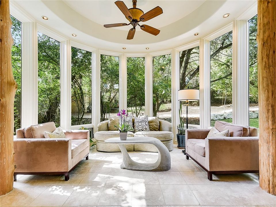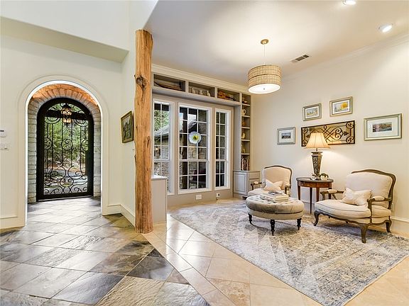 1 of only 5 homes in the intimate gated Westlake community, its wooded 2+ acre lot affords this traditional Texas family home an abundance of privacy. A thoughtfully designed layout allows multiple living/entertaining areas to flow seamlessly to a large screened porch and extensive outdoor living space beyond. In addition to a professionally outfitted kitchen, the primary residence includes 5 generous beds/baths. Connected by breezeway, the 1 bed/1 bath guest house has Hill Country appeal in spades.