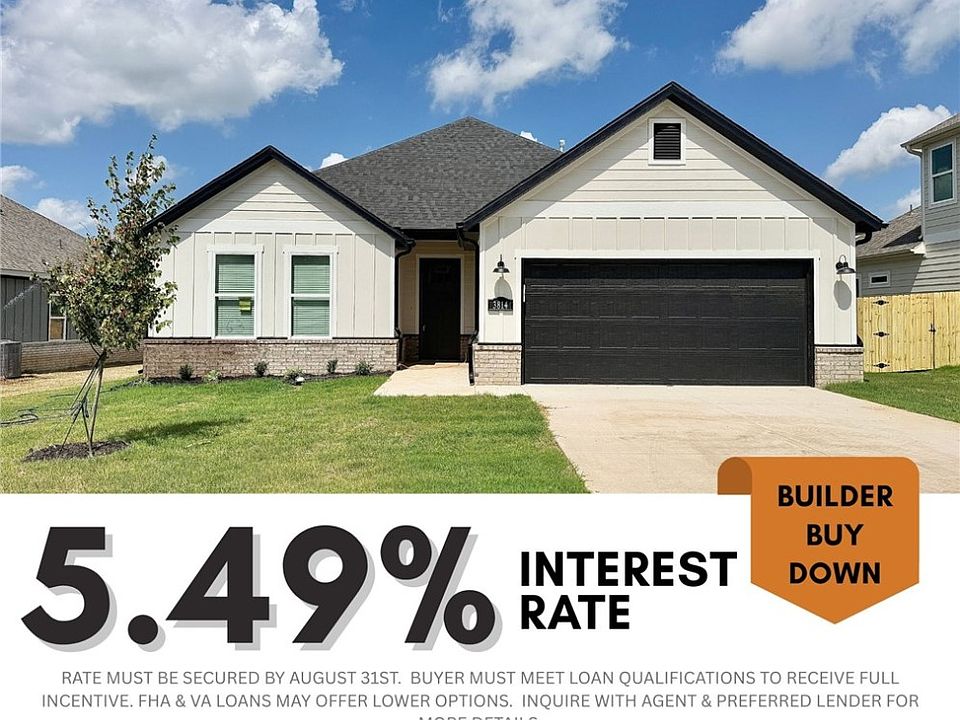 Fence, blinds and gutters included! Discover your dream home in the new neighborhood- Jacob's Crossing. Fredrick plan with 1 level, garage on the right & East facing! 10 ft ceilings in the living room, linear electric fireplace, LVP flooring throughout the main living areas & primary bedroom, quartz countertops & more. Chef's kitchen boasting frigidaire stainless steel appliances, gas range, pantry, quartz countertops, bar pull handles, large island & gorgeous backsplash. Luxurious primary bedroom features abundant natural light, while the spa-like primary bathroom offers a walk-in shower, double sinks, tub & spacious walk-in closets. Additional features include three large secondary bedrooms and a separate laundry room. Nestled on a generous lot with covered patio that overlooks the serene sodded, fully fenced backyard, creating an exceptional living experience. Sturdy concrete siding & brick! Model home located at 3631 Tranquility St- Lot 1.