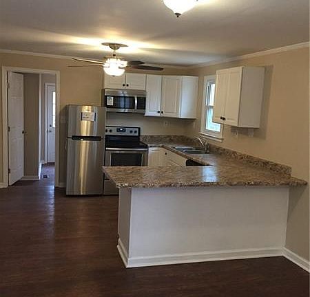 Recently renovated 1960's Bungalow on large level private lot! Large covered front porch with all new decking - perfect for sunsets, entertaining and relaxing. Additional new deck off family room too! New HVAC, doors, ceilings, paint, all new appliances, ceiling fans, washer/dryer hookups added, blown insulation & floors. Original wood burning stove. Bathroom totally renovated with tiled shower, vanity, mirror & lights. Close to Lake Lanier, 8 miles to downtown Gainesville, NE GA Medical Center & Laurel Park. See attached list of improvements!