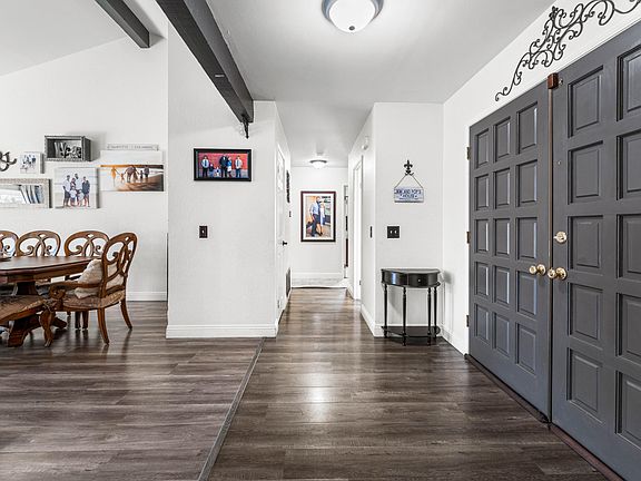 BEAUTIFUL POOL HOME - A True Masterpiece of Elegance and Comfort Prepare to be enchanted by this remarkable custom single-story pool home located in the highly sought-after with an array of captivating features and impeccable upgrades, this home offers the perfect blend of luxury and practicality. The home's curb appeal is nothing short of breathtaking, with a custom concrete driveway and a charming courtyard enclosed with elegant fencing, setting the stage for an exceptional living experience. Open Concept Living: As you step through the welcoming double door entry, you'll be greeted by an inviting open floor plan, accentuated by gleaming high ceilings, and an abundance of natural light. This is the perfect canvas for creating unforgettable memories. The formal living and dining rooms are designed for entertaining, featuring a custom-designed brick fireplace that exudes character and warmth. With easy access to the backyard, these spaces seamlessly transition indoor living to outdoor enjoyment. The kitchen is a chef's delight, with granite countertops, a gorgeous backsplash, stainless steel appliances, including a double oven, a well-appointed pantry, and a convenient breakfast bar. Cooking and gathering here is a joy. The master suite is a true sanctuary, graced with high ceilings, crown molding, a ceiling fan, and a spacious walk-in closet. This private haven also provides direct access to your backyard, bringing the outdoors in. The master bathroom is a true work of art, boasting beautiful updates, including quartz countertops, dual sinks, a vanity, a custom separate tub, and a shower with a refreshing rain shower head. Three additional bedrooms are generously sized, each featuring ceiling fans and closet space, offering versatility for a growing family or a dedicated home office. Step into your own outdoor paradise, designed for entertaining and relaxation. The backyard boasts a custom in-ground pool and spa, a built-in BBQ for culinary enthusiasts, enthusiasts, lush green turf, meticulously manicured landscaping, block walls for privacy, a covered patio for al fresco dining, and more. Situated near schools, parks, and the freeway, this home offers the perfect blend of convenience and serenity. Don't hesitate to seize the opportunity to make this remarkable property your very own. Your dream home awaits!
