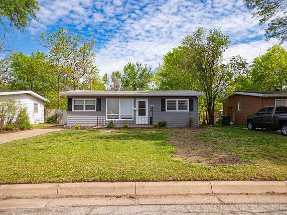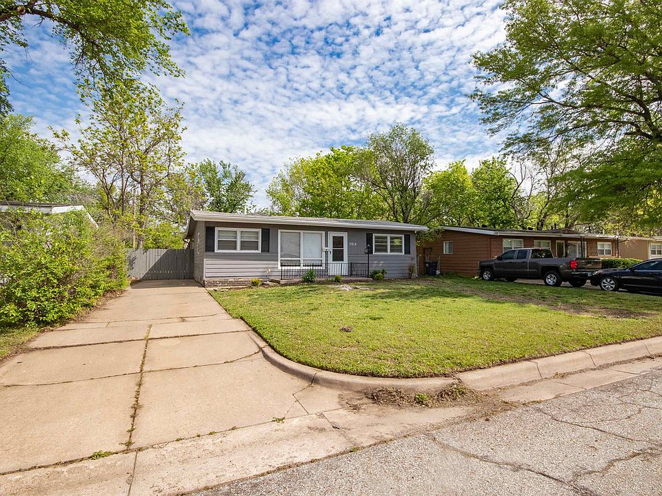 Charming home in Northwest Big River! Recently updated 3 bed, 1 bath home offers over 1,224 sq ft of space on a fully fenced 0.17 acre lot! A welcoming living room enjoys street views with large picture windows. The compact dining nook with brick wall connects to the efficient parallel kitchen and nearby laundry room with cabinets and complete washer & dryer hookups. The spacious family room is a pleasant surprise, complete with its skylight, brick fireplace, and sliding door access to the open patio. Access the rest of the home via a set of French doors where three spacious bedrooms await. All rooms have plenty of windows and built-in closets. A hall bath with a full-sized tub completes the residence. The backyard is fully fenced and features a pathway, firepit, well-maintained lawn, and a shed you could use as a storage or children’s playhouse. Live close to schools, parks, and local attractions around the Arkansas River. The nearby W 21st and N Amidon Ave is home to your local Walmart, Starbucks, Dillon’s, and more! Call to schedule a showing with us today.