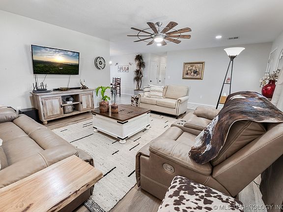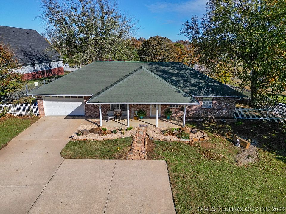 This beautiful brick home on the World’s Tallest hill in Poteau, OK features 1,449 sq. ft. with 2 bedrooms and 2 bathrooms on 1 acre m/l land. Step inside and feel this home's luxury with these partially remodeled features: new granite countertops, can lighting, stainless steel appliances, and both bathrooms completely remodeled. The house also has a walk-in closet, newly installed carpet, stylish tile flooring, and vinyl plank throughout the home. The 2-car attached garage ensures your vehicles are secure and easily accessible. The property has new fencing providing a safe and spacious haven for your furry friends. This home combines elegance, functionality, and pet-friendly living.