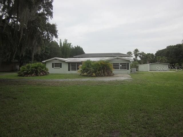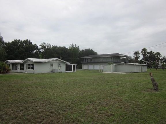 Two separate homes. Front home (main) consists of 4 bedrooms, 3 baths and a great lanai. The space is used well but needs some updates and TLC. The rear structure which is a 3 bedroom 1.5 bath unit is above a six (6) car garage. There is a wrap around deck and the North and South decking area is under cover. This is a unique opportunity for the next owner to own a property that sits on 1.3 acres with no deed restrictions. Each unit has a separate meter.