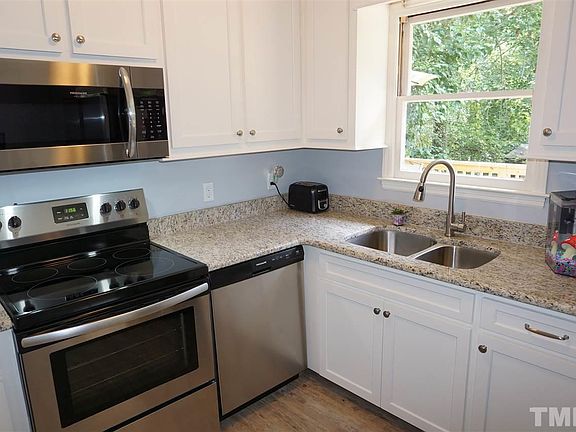 Awesome one story home just minutes from Downtown Raleigh. Updated kitchen, brand NEW-cabinet facings, granite countertops, SS appliances and flooring. New carpet and laminate flooring throughout. Crown molding. Updated doors. Smooth ceilings. Updated baths. Huge deck is great for entertaining. Covered front porch. Beautiful .41 acre lot, backyard is fenced & very private. Big garage with tons of shelves. Parking pad. Roof-2016 -HVAC-2014. Excellent location! Walk to Cloverdale Park. No HOA dues!