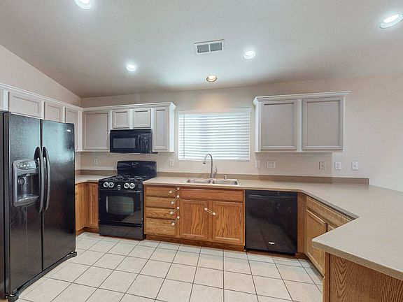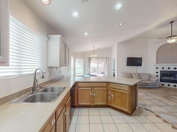 Discover this charming single-story gem in Northern Meadows! Perfect for first-time buyers or anyone seeking a beautifully designed, low-maintenance home. The open floor plan features a spacious great room with a cozy gas fireplace, soaring cathedral ceilings, and tasteful tile throughout. The gourmet kitchen boasts Corian countertops, a pantry, and sleek black appliances, flowing seamlessly into the great room for effortless entertaining. The oversized primary suite offers a private retreat with a double vanity, garden tub, separate shower, and walk-in closet. Conveniently located near schools, the Rio Rancho Event Center, and Sandoval County Medical Center, this home is a true standout!