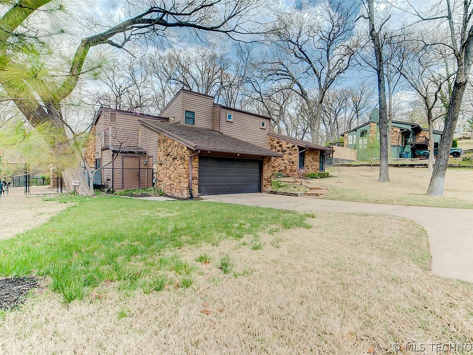 Fabulous updated split level, great open spaces, 3 living areas, 3 bed, 2 1/2 baths, a very private upstairs master suite, sunken conversation area with a beautiful rock fireplace. This home sits on a private wooded lot backing up to a green belt, multiple composite decks, newer hardy plank siding and a life time metal roof. This home has been meticulously maintained and is move in ready.