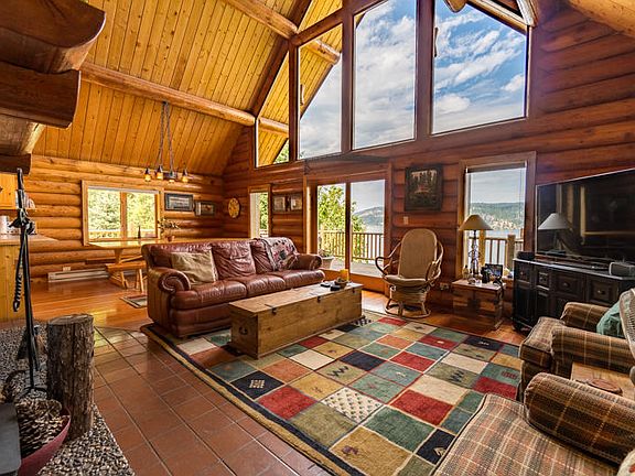 Gorgeous log home overlooking Lake Coeur D Alene. Incredible views from the large wraparound deck. Plenty of room for all in this 3 bed, 3 bath home, with additional sleeping loft. Enjoy a cozy fire in the floor to ceiling river rock fireplace. Main floor has an open floor plan, there is also a large, walkout, family room in the basement. 2 car garage with finished storage space above and side workshop. Boat dock and tram to the water. Just 15 minutes to CDA