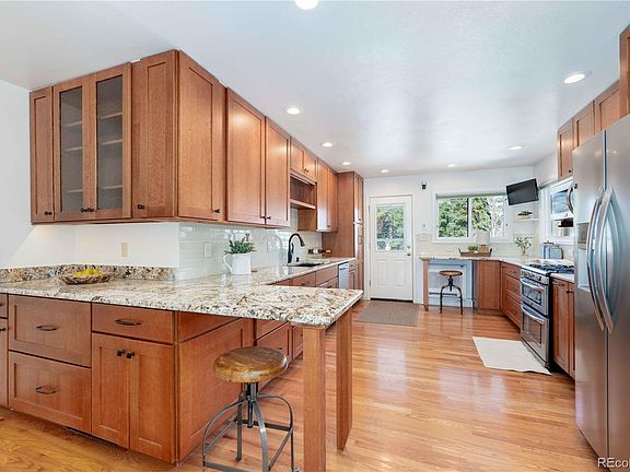 Welcome to this highly walkable, sunny home in the tree-filled Cherry Knolls neighborhood! The beautiful Easter Place will be your home base as you walk to the Cherry Knolls pool, the neighborhood schools, to shopping and dining at the Streets of Southglenn, Cherry Knolls park and playground, and the Big Dry Creek trail system. Then come home to a welcoming wide-open foyer, large bright windows, and an instant view of the professionally landscaped retreat of a backyard. The fully remodeled kitchen, dining, and living room space is an entertainer’s dream. The kitchen leads directly out to a masterfully designed covered back porch. Two sunny bedrooms, a full bath, and the primary bedroom with en suite round out the main floor. Head down to the newly remodeled lower level, again with bright windows, tons of natural light, and two more bedrooms and a bath. The lower level also boasts a spacious laundry with bonus/crafting space. You can view the energy efficient wall-mounted boiler system with copper pipes like a work of art and the brand new water heater. But it is the outdoor space that will win your heart! Head back to view multiple outdoor entertaining spaces, professional landscaping, and all the trees providing a private park-like feel.