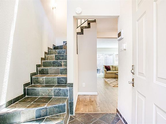 Stunning updated corner unit townhome one block from Oak Lawn.Walking distance to Katy Trail & great restaurants.Boasting updated windows,sliding doors,roof & skylights,electric panel,& other improvements,this unique home is both spacious and efficient.Living room with fireplace,wet bar,built-in bookcase & door to back patio with custom wood decking shaded by a large tree!The 2nd floor master bedroom is complete with a fireplace & a wet bar with refrigerator.A fabulous master bath has dual bowl sinks,granite counters,& huge walk-in closet.The 2nd bedroom located on 3rd floor with private bath & private covered balcony.1 carport with garage door & 1 assigned parking in front.See Improvements List in Documents.
