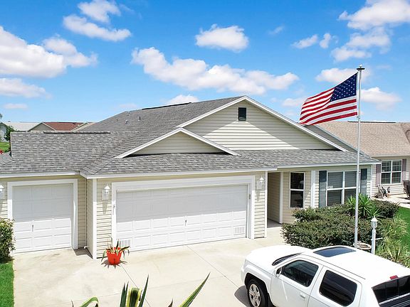 Don't miss out on this awesome opportunity to own a 3 bedroom 2 bath home in a quiet corner of The Villages. Wonderful open floor plan, freshly painted, plenty of counter space, cabinetry and stainless-steel appliances in the kitchen. You will love the extra spacious master bedroom with cathedral ceilings. The huge master bath offers two sinks, a tile shower and dressing room. The front spare bedroom is huge, it would make the perfect guest room or even a large office or den. Enjoy the therapeutic spa in the spare bathroom after a long day or sporting event. You will come out a new person just after 20 minutes. This well-kept home is close to shopping and restaurants as well. Park both cars and the golf cart in this massive three car garage complete with built in work bench.
