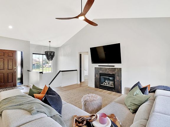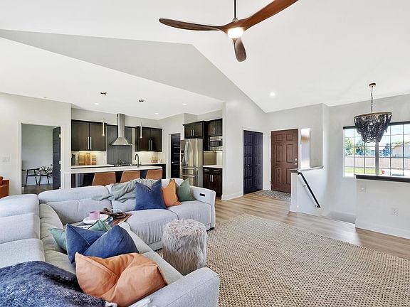 As you walk through the front door of this modern 5 bed/3 bath/3 car garage home, your eyes will immediately be drawn to the brand new 9"LVP flooring followed by looking up at the freshly painted walls and vaulted ceiling, then turning your head to the brand new quartz counters in the kitchen. This main level consists of the master bedroom/bath and 2 additional bedrooms with full bath. As you walk through the master bath you will be appreciate the double sinks and separate tub and shower. What's better than a walk in closet...a walk in closet just steps away from the main floor laundry! There is also one fireplace on the main level and an additional in the basement. Recent updates to the main level include new paint, new ceiling, trim, 9" LVP flooring, quartz countertop, new sink in kitchen, freshly painted doors, 4 automatic blinds (1 front facing, and 3 facing the back of the house, new carpet on stairs, all new LED lighting, fixtures, outlets, switches, ceiling fan, and recently stained deck. Make sure to open every door in this amazing basement. Basement with 2 bedrooms and large full bath, an additional room that could be used as a 6th bedroom, craft room, office, playroom, or additional storage. The almost full kitchen allows for the basement to be an additional entertaining space with all appliances and small TV staying with the home. There is additional storage under the stairs as well as at the end of the hallway (freezer not staying with home). The tree lined backyard gives you the privacy to enjoy sitting outside on either the newly stained deck or patio area. The yard has a sprinkler system on a well and the bed in the back are hooked up for irrigation. Don't miss out on this one! Schedule your showing before it's too late!!