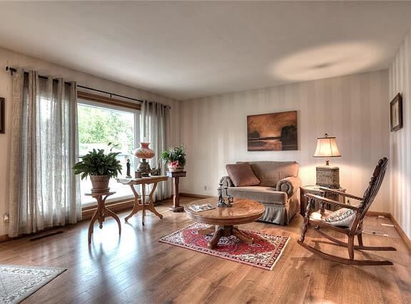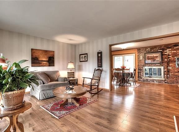 Super RANCH on lg corner lot w/ fenced backyard. Open LR & DR w/ newer wood laminate flooring. Dining room has WBFP!! Custom kitchen cabinets-all appliances stay. Add'l Family room/sitting room/breakfast room with bay window & parquet floor. HUGE 1st flr LAUNDRY/pantry off fam rm. Finished rec room. 2 car garage & extra fenced boat storage or 3rd parking space. Many updates including driveway/sidewalk, water heater, garage door & front door, Low E glass windows, patio slider, hall bath, ROOF & gutter covers