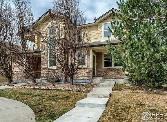 Wonderful end unit fronting cul de sac and open space area. Nicely located within Subdivision. NEW-carpet upper level, kitchen range, microwave, disposal, faucet, smoke and CO2 alarms, and entry locks and deadbolts. All appliances stay, tile countertops, wood flrs main level, maple cabinets, gas fireplace, and 9 ft ceilings. Add a 2 car attached garage, finished bsmt with office, rec room, extra storage shelving and you get a sweet property. Easy access to I25, schools, shopping, restaurants.