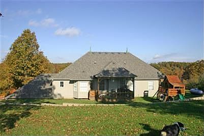 Hillside beauty of stone and brick sets on 11 Acres overlooks valleys & trees. Builder's custom home with much architectural detail. Barrel vaulted ceilings, large kitchen,& storage galore. Very open floor plan opens to living and dining areas. Open pasture and outbuilding good for some live stock or outdoor hobbies. Long private drive keeps this property very private. Views from most rooms of this 2600 sq ft hilltop castle with 4 bedrooms and much more.