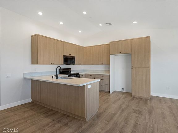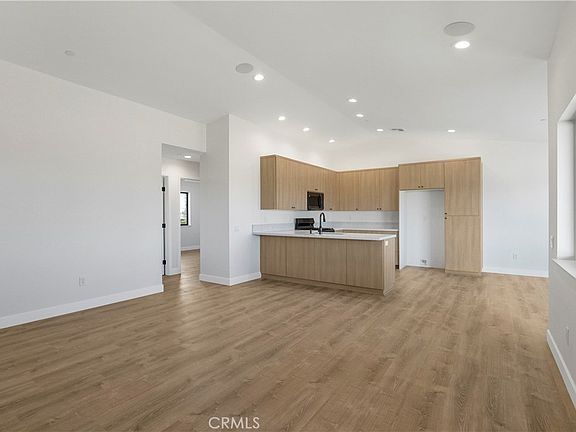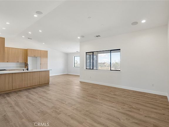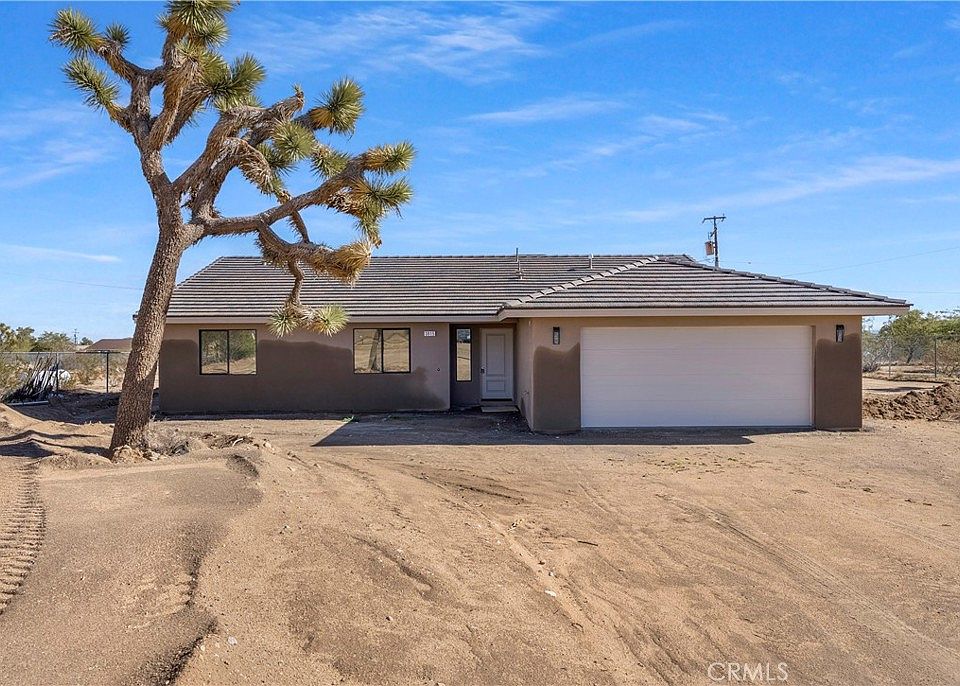 New construction opportunity in Yucca Valley! Plotted on a .46 acre lot, this new build boasts 3 bedrooms and 2 baths across 1,449 square feet. Featuring an open floor plan, the common areas flow naturally into one another anchored by the well-appointed kitchen. The chef's kitchen features quartz counter tops, ample cabinet space, a breakfast bar with space for seating, recessed lights, and upgraded Samsung black stainless appliances. The primary suite is an expansive space with a walk-in closet. The ensuite bath features a tiled in shower with glass enclosure and a dual vanity. On the opposing side of the home, the secondary bedrooms align off of a central hall. Outside, the .46 acres of usable space is a blank slate for your landscaping dreams. The rear patio offers 277 square feet of under roof patio space, perfect for entertaining. Numerous amenities throughout such as paid for solar, pre-wired for smart home technology, laminate flooring, a 577 square foot finished garage, and custom matched thermofoil cabinets throughout, make this one a must see.